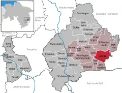 Se encuentra ubicado al sureste del estado, a poca distancia de la frontera con el estado de Sajonia-Anhalt.