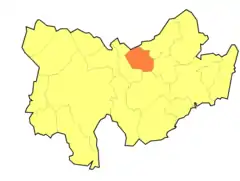 Se encuentra ubicada al este de la región, cerca de la orilla del río Morava —un afluente izquierdo del Danubio—, de la frontera con las regiones de Zlín y Moravia-Silesia, y a poca distancia al este de la ciudad de Brno.[1]