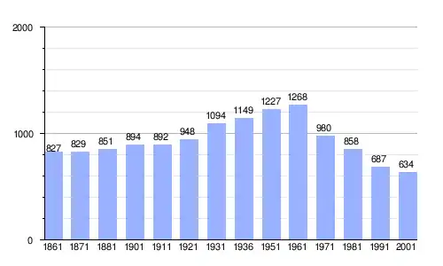 | Gráfica de evolución demográfica de Ula Tirso entre 1861 y 2001 |