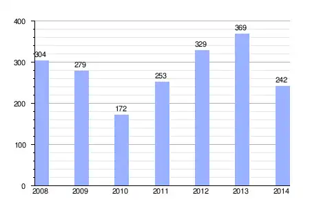 | Gráfica de evolución de la deuda viva del ayuntamiento entre 2008 y 2014 |