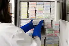 Las muestras biológicas en ultracongeladores a menudo se almacenan en tubos de polímero y microtubos, generalmente dentro de cajas de almacenamiento que comúnmente están hechas de cartón, plásticos de polímero u otros materiales. Los microtubos se colocan en cajas de almacenamiento que contienen una rejilla de divisores que normalmente permiten almacenar 64, 81 o 100 tubos. Los ultracongeladores estándar pueden almacenar aproximadamente de 350 a 450 cajas de microtubos.[4]