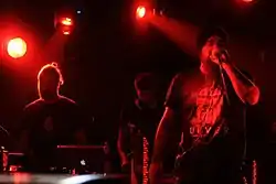 ![]() Ulver actuando en Budapest, en febrero de 2010. De izquierda a derecha: Jørn H. Sværen, Ole Alexander Halstensgård y Garm. | ||