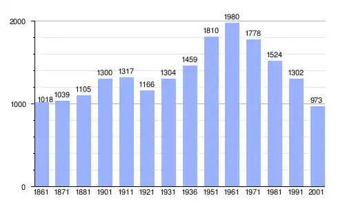 | Gráfica de evolución demográfica de Umbriatico entre 1861 y 2001 |
