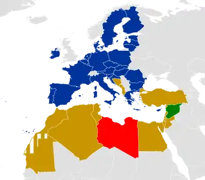 El objetivo de establecer una zona de libre comercio en la región euromediterránea para 2010 (y posteriormente), propuesto inicialmente en la Conferencia de Barcelona de 1995, fue igualmente ratificado por la Cumbre de París de 2008.[1]