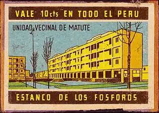 ![]() La Unidad Vecinal Matute en una publicidad de la empresa estatal de fósforos. | ||