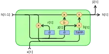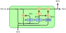 La unidad recurrente activada por luz (LiGRU)[4] elimina la puerta de reinicio, sustituye tanh por la activación ReLU y aplica la normalización por lotes (BN):