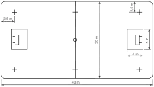 Según las reglas internacionales, el terreno puede ser de 36-44 m de largo por 18-22 m de ancho. En los partidos de niños de corta edad se pueden usar terrenos más pequeños.