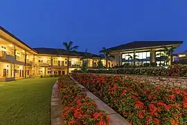 En un espacio mayor de 100 hectáreas en Berekuso, pasando por alto la ciudad capital de Ghana de Acra, el Campus Ashesi une el tradicional diseño ganés, con la tecnología moderna y buenas prácticas medioambientales. El campus tiene patios interconectados patios para enfatizar un sentido de comunidad.