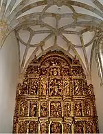 La Capilla de Sancti Spiritus posee un retablo plateresco de gran valor artístico. Su ejecución fue contratada en Valladolid en 1534 por el obispo de Ávila con el entallador Gaspar de Tordesillas, en tanto que de su dorado y estofado se debieron encargar al año siguiente los pintores abulenses Jerónimo Rodríguez y Cristóbal de Bustamante. Sito bajo una bóveda de nervadura cuadrifoliada, se trata de una pieza de cuatro alturas más predela y siete entrecalles separadas por balaustres, de traza escalonada, e imágenes exentas en lugar de relieves narrativos. Los temas centrales son la Asunción de la Virgen María, los patronos de la universidad y la villa, el Espíritu Santo y San Miguel. El tímpano es curvo, lo que da al conjunto un aspecto aovado.