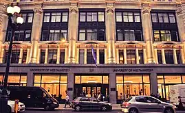 La mayor parte de la escuela se encuentra en la Regent Street dentro de la Ciudad de Westminster en el centro de Londres, con campus adicionales en Fitzrovia, Marylebone y Harrow. La universidad también cuenta con una sede adicional en Uzbekistán, en la cual funciona la Universidad Internacional de Westminster en Tashkent.[1]