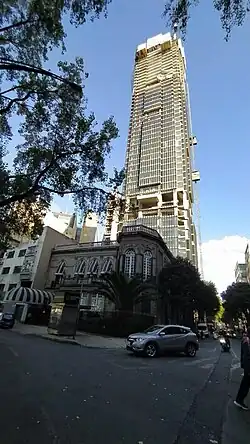 La construcción del rascacielos se basa un análisis exhaustivo de seguridad en caso de sismos. Por ello cuenta con uno de los cimientos más profundos y resistentes que llegan hasta el fondo del lago sobre el que se levanta la CDMX.[3] Hacia abajo cuenta con 17.5 sótanos, cisternas y además pilotes que anclan el edificio a 75.5 metros de profundidad.