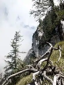 Parte de la ladera este del Untersberg fotografiada desde la parte superior del Nierntal .