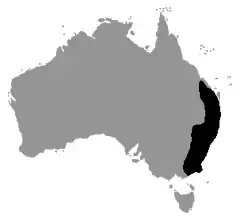 Esta especie es endémica del este de Australia. Habita en el sureste de Queensland, este de Victoria y este de Nueva Gales del Sur.[5]