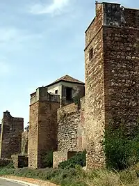 La alcazaba se comenzó a construir en 1065 por orden del rey Badis y fue ampliada en época nazarí. Se sitúa en el lado oriental de la medina y está rodeada por tres murallas. El recinto exterior albergaba la plaza de armas y contenía los accesos a la medina. En el recinto interior se situaban las dependencias palaciegas y un pequeño barrio intramuros.[13] La alcazaba estaba comunicada con el castillo de Gibralfaro a través de un camino protegido por una doble muralla o coracha, utilizada para el suministro de alimentos de los soldados. El castillo adquiere su fisionomía definitiva durante el reinado de Yusuf I (1333-1354), aunque algunas de sus partes estas datadas en épocas anteriores. Consta de dos recintos amurallados y dos áreas interiores: la alta, donde se encontraba la mezquita del castillo, un pozo de origen fenicio, baños y la torre mayor; en la zona baja se situaban las caballerizas y la residencia de la tropa.[14]
