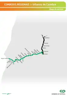 Después del abandono por parte de CP de las conexiones de Coímbra en el eje Lousã - Miranda do Corvo (Ramal de Lousã), y de esta ciudad a Figueira da Foz a través de Cantanhede (Ramal de Figueira da Foz), en 2011, los servicios Urbanos de Coimbra quedaron reducidos al corredor del Baixo Mondego, de Coímbra a Figueira da Foz a través de Montemor-o-Velho (Ramal de Alfarelos y tramos de las líneas del Norte y Oeste).