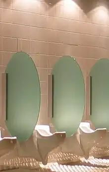 Los modelos de urinarios femeninos que se ofrecen hoy en día son conceptualmente similares entre sí y siguen la forma y el diseño de los mingitorio masculinos, pero se adaptan más a la anatomía femenina . Una diferencia es que la mayoría de las mujeres eligieron pararse de espaldas al urinario y adoptar una posición medio en cuclillas , que a veces también se denomina "postura del esquiador" o "postura flotante". Esto se basa en la postura que las mujeres generalmente adoptan en los baños públicos convencionales si están sucios y cuando no se desea el contacto físico, pero flotar puede dejar orina en la vejiga y puede no ser bueno para los músculos del suelo pélvico . [11]Así, algunas personas se ciernen sólo en casos de extrema necesidad.
