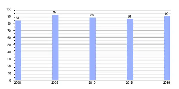 | Gráfica de evolución demográfica de Uriz (parroquia) entre 2000 y 2019 |