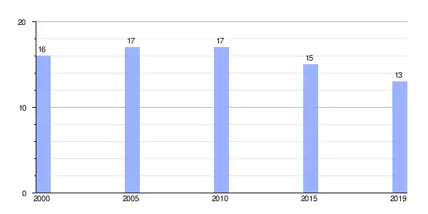 | Gráfica de evolución demográfica de Uriz (aldea) entre 2000 y 2019 |