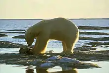 El oso polar u oso blanco (Ursus maritimus) es una especie de mamífero carnívoro de la familia de los osos (Ursidae).[2] Es junto con su pariente, el oso Kodiak (Ursus arctos middendorffi), uno de los carnívoros terrestres más grandes de la Tierra.[3] Vive en el medio polar y zonas heladas del hemisferio norte. Es el único superdepredador del Ártico.