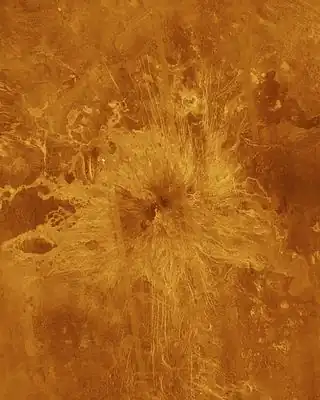 ![]() Imagen de radar de Ushas Mons obtenida por la sonda Magallanes. | ||
