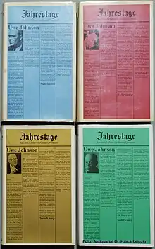 Regresaría a Berlín en 1969 donde sería nombrado miembro del Centro PEN de Alemania Occidental. Su obra Jahrestage, dividida en cuatro tomos, se empezaría a publicar por la editorial Suhrkamp en 1970. En ese libro, el personaje vive en Nueva York pero siempre está pensando en los lugares de Mecklemburgo, mientras va reflexionando sobre los hechos contemporáneos. Luego de publicado el tercer tomo, en 1973, Johnson sufriría un bloqueo creativo (además de problemas de salud), que no le permitirían escribir el cuarto tomo. Su editor Siegfried Unseld dice al respecto:
