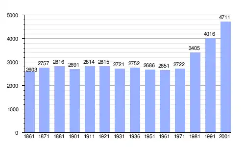 | Gráfica de evolución demográfica de Uzzano entre 1861 y 2001 |