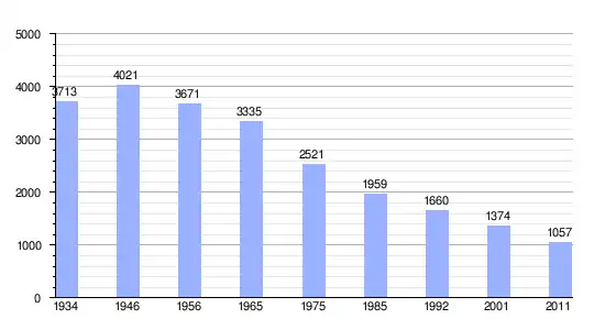 | Gráfica de evolución demográfica de Válchitran entre 1934 y 2011 |
