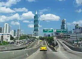 ![]() La Vía Israel junto el Corredor Sur, y más adelante de la Vía, el F&F Tower | |||||||||