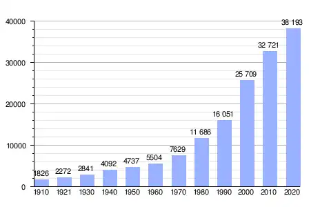 Durante el período 2010-2020, la ciudad tuvo un crecimiento anual del 1.4 % de su población.[8]