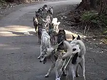 Los trineos tirados por perros comenzaron como un deporte formal en América del Norte en 1908; sin embargo, la práctica de utilizar perros para tirar de trineos se remonta al menos al año 6000 a. C. [51] Se han encontrado restos de trineos y arneses junto con restos caninos en Siberia que datan del carbono hace 7800-8000 años. [52] Un musher de perros necesitará desarrollar un vínculo estrecho a veces con hasta 20 o más perros en su perrera para mantener un equipo leal y altamente receptivo. El musher deberá cultivar una relación particularmente sólida con su perro guía. El perro guía decidirá en última instancia qué camino tomará el equipo. [53]