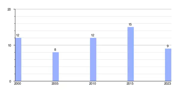 | Gráfica de evolución demográfica de Vaamonde entre 2000 y 2023 |