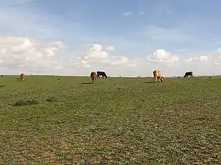 ![]() Vacas marismeñas en semilibertad, pastan en una dehesa en La Puebla del Río (Sevilla) | ||