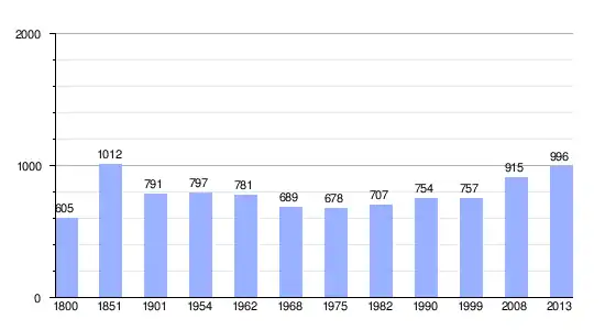 | Gráfica de evolución demográfica de Val-d'Orger entre 1800 y 2013 |
