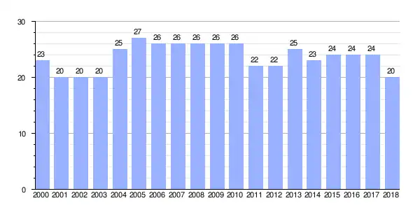 | Gráfica de evolución demográfica de Valado entre 2000 y 2018 |