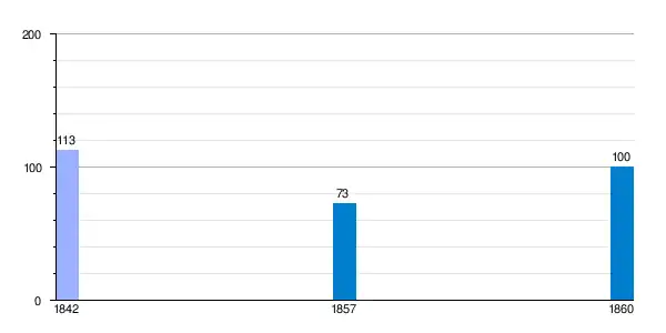 | Gráfica de evolución demográfica de Valbueno[1] entre 1842 y 1860 |