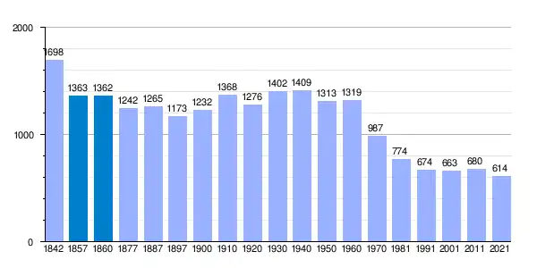 | Gráfica de evolución demográfica de Valdaracete[1] entre 1842 y 2021 |