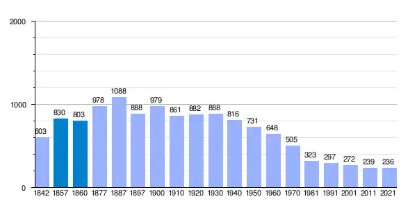 | Gráfica de evolución demográfica de Valdelarco[4] entre 1842 y 2021 |