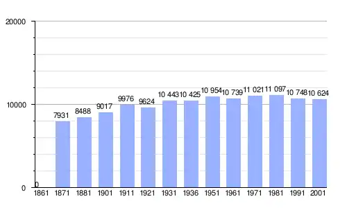 | Gráfica de evolución demográfica de Valdobbiadene entre 1861 y 2001 |