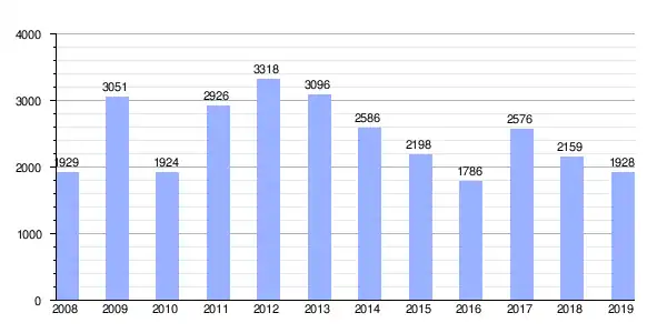 | Gráfica de evolución demográfica de Valencina de la Concepción[7] entre 1842 y 2021 |