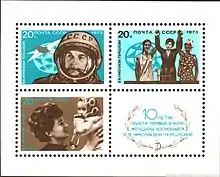 Valentina Vladímirovna Tereshkova (en ruso: Валенти́на Влади́мировна Терешко́ва; Máslennikovo, Unión Soviética, 6 de marzo de 1937)[1] es una cosmonauta, ingeniera y política rusa. Fue la primera mujer en ir al espacio, seleccionada entre más de cuatrocientos aspirantes y cinco finalistas para pilotar el Vostok 6, lanzado el 16 de junio de 1963. Completó 48 órbitas alrededor de la Tierra en sus tres días en el espacio. Sigue siendo la única mujer en hacer una misión espacial en solitario.