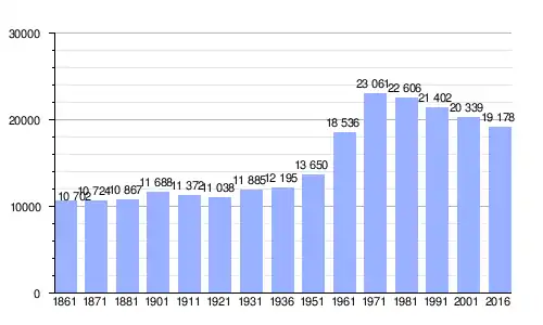 | Gráfica de evolución demográfica de Valenza entre 1861 y 2016 |