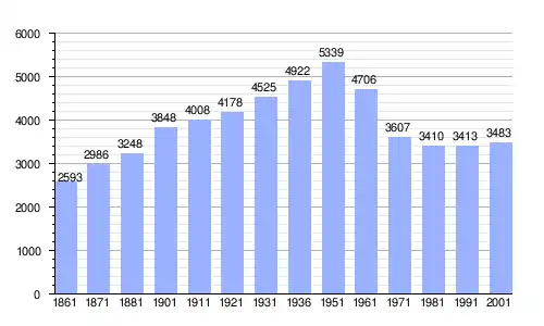 | Gráfica de evolución demográfica de Valfabbrica entre 1861 y 2001 |