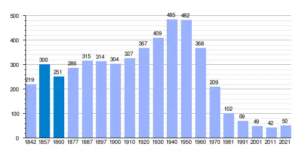 | Gráfica de evolución demográfica de Valhermoso de la Fuente[3] entre 1842 y 2021 |