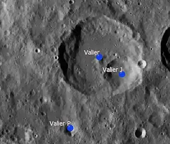 Por convención estos elementos son identificados en los mapas lunares poniendo la letra en el lado del punto medio del cráter que está más cercano a Valier.