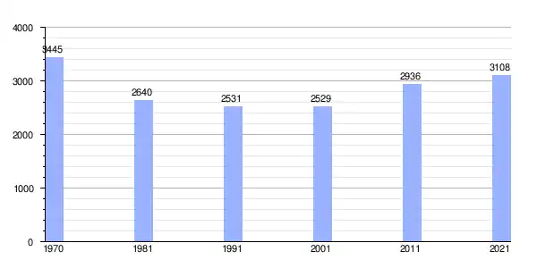 Población de derecho según los censos de población del INE. Población de hecho según los censos de población del INE.En estos Censos se denominaba Vall de Bas: 1970 y 1981. |