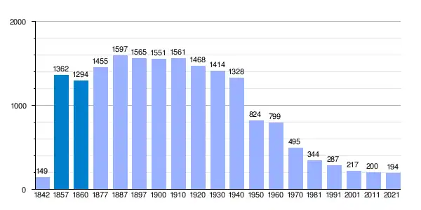 | Gráfica de evolución demográfica de Valle de Valdelaguna[2] entre 1842 y 2021 |