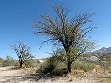 El matorral de fouquieria se desarrolla en suelos bien drenados sobre laderas de colinas de origen ígneo y pendiente pronunciadas. La especie dominante es Fouquieria campanulata. Acacia sp., Myrtillocactus geometrizans, Prosopis juliflora, Pseudosmodingium sp. y Yucca filifera destacan por su altura pero se presentan aisladamente.[. 29] La Quercus microphylla se ha observado en la Sierra de Actopan se presenta como una alfombra de 20 a 30 centímetros de altura, y la Quercus alpescens se ha observado en la cima del Cerro Juárez.[. 30]