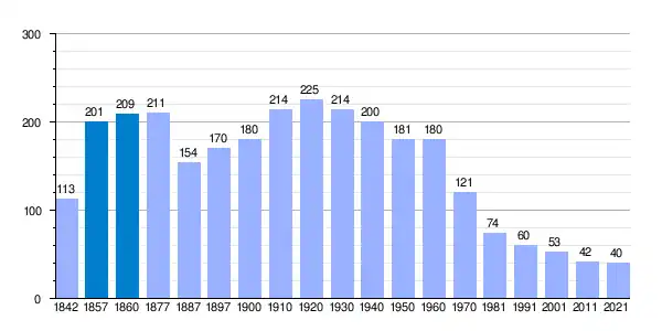 | Gráfica de evolución demográfica de Vallejera[2] entre 1842 y 2021 |