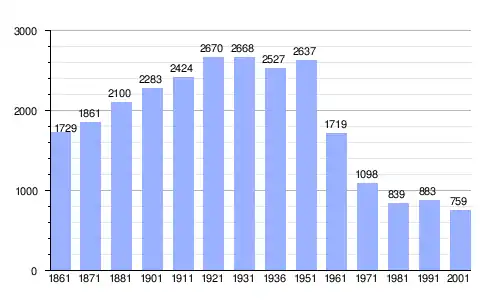 | Gráfica de evolución demográfica de Vallelonga entre 1861 y 2001 |