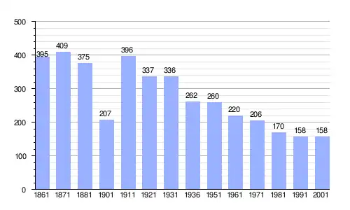 | Gráfica de evolución demográfica de Valleve entre 1861 y 2001 |
